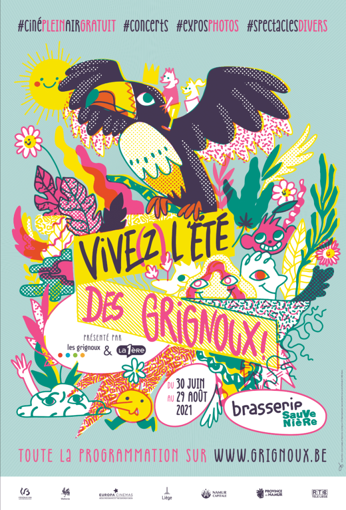 Affiche réalisée pour les Grignoux, en collaboration avec Sébastien Gillard, 2021Suite d’illustrations réalisées pour les Grignoux, 2021Affiche du Festival International de Piano de Quaregnon, 2021